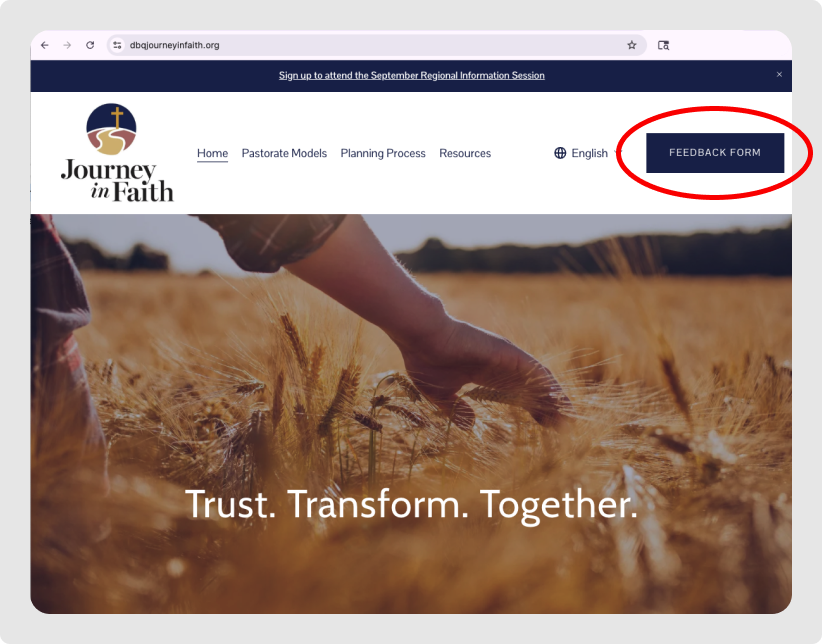 Option 2: Submit Online to Archbishop Zinkula Visit the Journey in Faith website and fill out the Feedback Form to send your comments straight to Archbishop Zinkula.